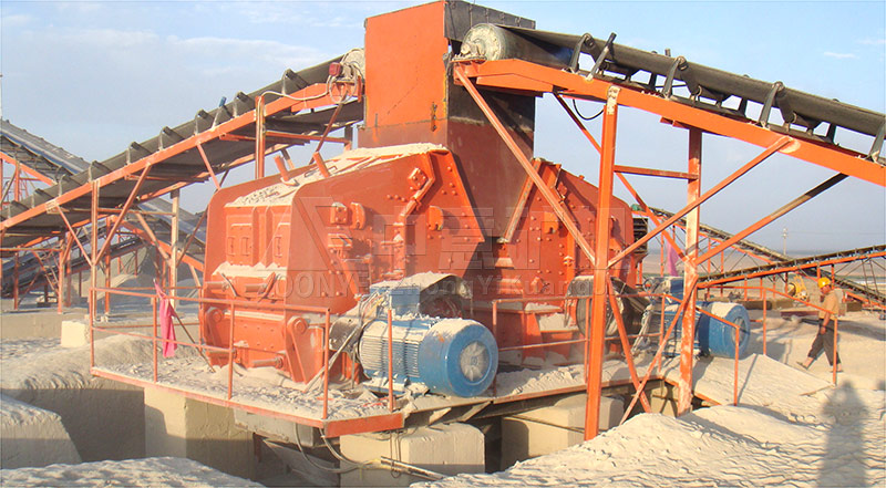 現(xiàn)場采用三級破碎的設計流程,全套設備采用鄭州中意砂石生產(chǎn)設備。即:給料機、顎式破碎機、 反擊破碎機、高效沖擊式制砂機等。