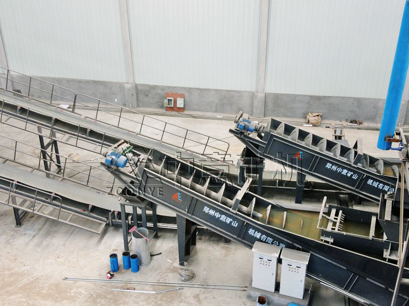 3、水洗篩分:滾筒篩篩分后的再生骨料潔凈率達到80%以上,再次通過浮選機設備可將細小輕物質以及污泥進行再次篩分,提升再加工的應用效果。